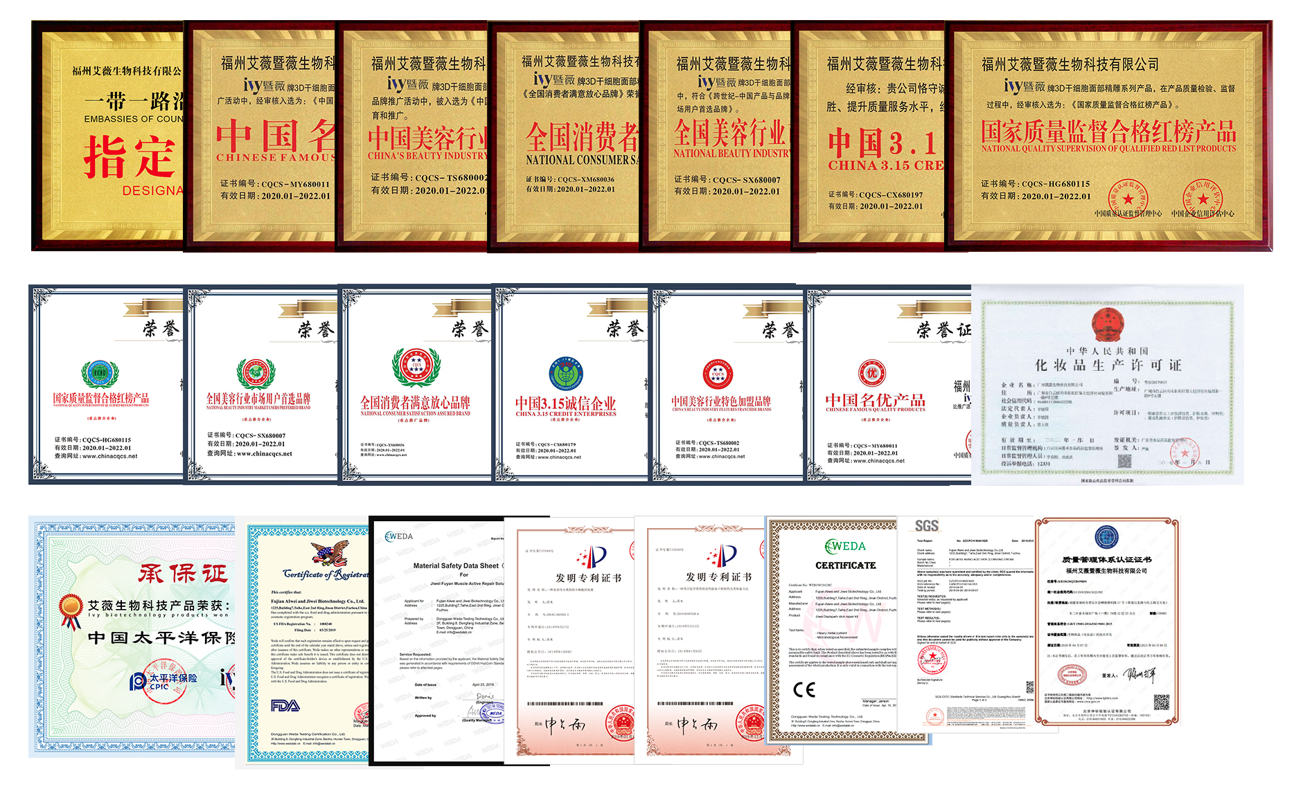 艾薇生物科技,荣获国家质量监督合格红榜证书,是中国315诚信品牌,8大证书、IOS9001质量管理体系认证证书、荣获世界上公认最大的食品与药物管理机构FDA认证,多重标准权威认证!